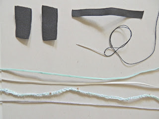 következik a gumis rész: a fonás két végére kell rávarrni a gumiszálat. A